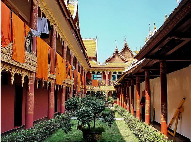 大殿两侧的经房和僧舍比大殿要低矮些,经房内收藏着贝叶经和其他手抄的佛教经典及傣族文化古籍。僧舍设有客厅和佛爷卧室、和尚卧室,内部结构比传统的僧舍有所变化。