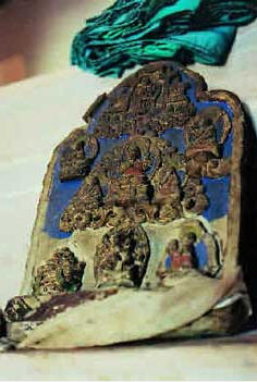 “察察”是一种用模具压制成形的泥佛。这尊高约70公分,经过烧制敷彩的大型察察十分少见,据寺里老僧人说,已有百年历史。
