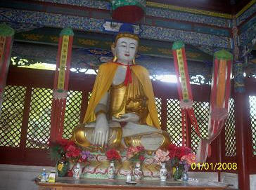 金刚殿两侧塑弥勒佛坐像,背塑韦驮像。大雄宝殿内塑三世佛像。白玉祖师殿,位于大雄宝殿与祖师殿之间,又称忠义殿,为屠宰行同仁供奉三国时代蜀国大将张飞的殿宇。屠宰行同仁将张飞奉为宗师,尊称桓候,对其顶礼膜拜。