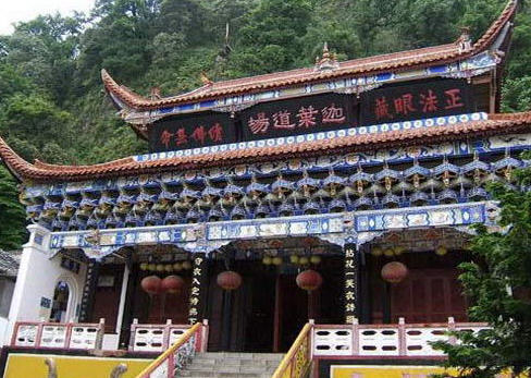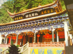 迦叶殿也叫迦裟殿,位于鸡足山天柱峰半山腰的东面,传说鸡足山的开山祖师饮光佛迦叶尊者在殿内的大盘石上守衣入定500年而得名。也就是这样的原因,迦叶殿在鸡足山众多的庙宇中占有举足轻重的地位,被称为“山中第一寺”和“山中诸寺之祖庭”。