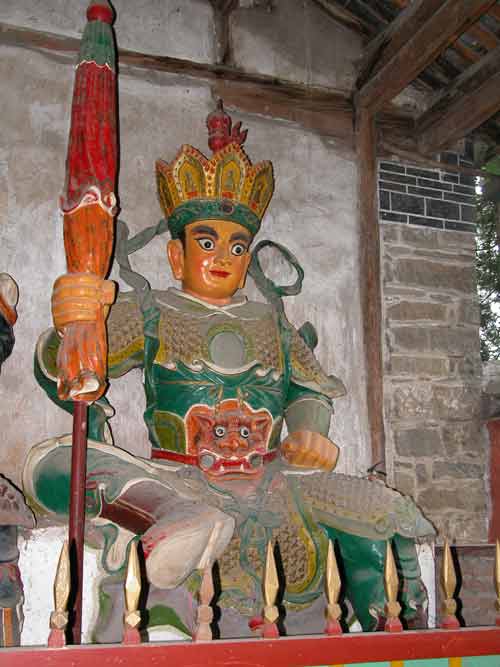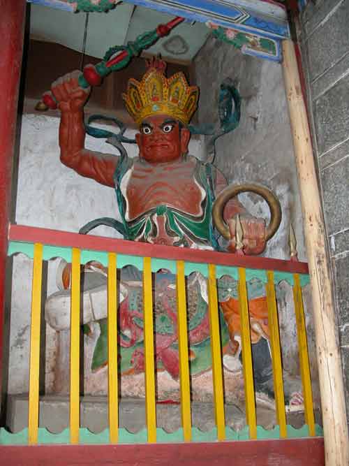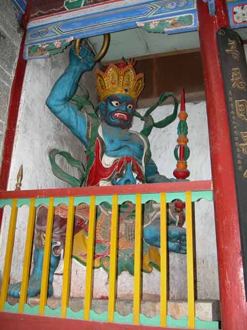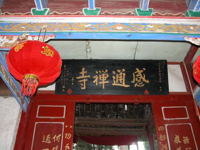 感通寺坐南向北,左边山门上刻有“法轮常转”四个大字,右边山门上刻有“佛日增辉”四个大字。山门左右,各有两尊丈二金身的护法神。