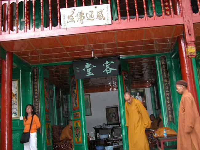 大雄宝殿右侧为客房,可供过往僧尼和客人食宿。客房前台柱上,有担当和尚自作的对联曰:“百尺高楼千古胜,万里江山一担当。”客房后为厨房,且有小路通山后。