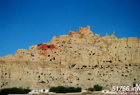 东嘎与皮央,这两个紧相毗邻的小村庄,位于扎不让西北方向约40公里处,就是这 无数绿洲中的一块。夏日里的东嘎、皮央,清清的河水静静流向山谷深处,绿色的草地上盛开着成片红黄相间的花朵,牛羊成群,牧歌声声,一派世外桃园的景象。 很难想象,在古格王国的历史上,这里曾经浓墨重彩抹下了辉煌的一笔。