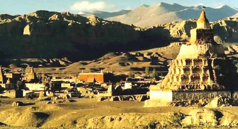 阿里高原的西部,有一个早已无数次被各种文宇所记载描述过的神秘王国——古格王国。按照史书的记载,早在吐蕃时代甚至更早些的时候,这一带曾是“羊同 国”的属地。史书《通典》记载:“大羊同国东接吐蕃,西接小羊同,北直于阗,东西千余里,胜兵八九万。其人辫发毡裘,畜牧为业。地多风雪,冰厚丈余。所出 物产,颇同蕃俗。无文字但刻木结绳而已。刑法严峻。”(卷190.边防六)慧超《往五天竺国传》中亦记有“杨同”国:“又迦什弥罗国东北隔山十五日程,即 是大勃律国、杨同国、娑播慈国。此三国并属吐蕃所管,衣着言音人风并别,着皮裘毡衫靴裤等也,地狭小,山川极险。”这里所记的“羊同”与“杨同”,其地理 位置都在今阿里境内。藏文史籍中则称这一带为“象雄”(ZhangZhung),地理范围相当辽阔,其中的“中象雄”大约即指今天的古格、冈底斯山一带, 系由数十个部族或部族集团所组成的“象雄王国”的中心区域所在。据载这里曾建有象雄王国的都城“穹隆银城”,并且拥有强大的兵力与众多的人口。直到公元7 世纪松赞干布建立起强大的吐蕃王国之后,才兴兵灭掉了这个西藏西部历史上最为古老的国家。