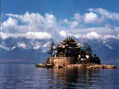 在洱海里,小普陀可以说是"袖珍小岛"。岛虽然小,但名气很大,在介绍大理的画册中少不了有它。