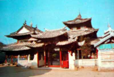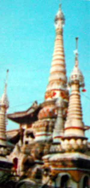 位于德宏傣族景颇族自治州潞西县芒市镇建国路中段北侧。系上座部佛教左底派塔寺,始建于清道光十六年(1836),现存建筑于1983年修葺。由正殿、佛塔组成。正殿重檐歇山顶,抬梁式木结构。院内佛塔为实心砖塔,由主塔和十六座小塔组成。主塔立于莲花须弥座上,高十点五米。小塔各高三点五米,位于塔基四角及外围四周,塔基四面设佛龛,双坡顶,并饰有神兽雕塑。
