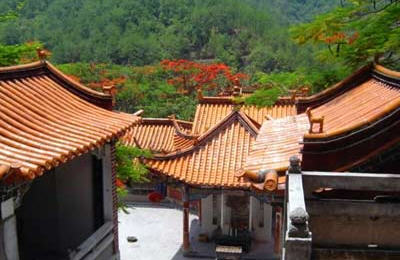 普贤寺,寺院依山傍水,气势雄伟,金碧辉煌,是滇西南最大的寺院。入寺需经过三道山门,攀登 197级台阶,进入寺院后给人产生历尽艰辛后心想事成的感觉。登寺远眺,峰峦起伏,群山叠翠,层林尽染。茶圣庙、茶花亭隔江相望,尽收眼底。脚下是奔流不息的小黑江。