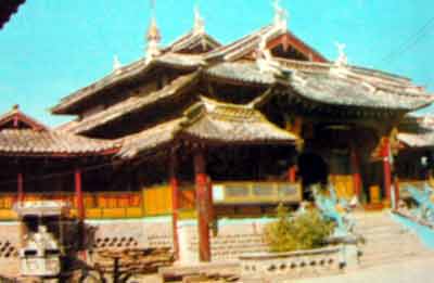 殿前台阶两旁,一对“嘎朵”(缅语传说中一种奇兽)雄姿勃勃,陡添几分庄严静穆气氛。佛殿正中,约三米高的释迦牟尼佛像端坐于莲台上。佛像流金溢彩,形体匀称和谐,表情生动细腻,面带慈祥的微笑,体态端庄。佛祖的两侧佛龛内,供有数十尊造型逼真,表情各异的佛像。其中有中国佛协1956年、1990年先后赠送的大小铜佛各一尊,极为珍贵。