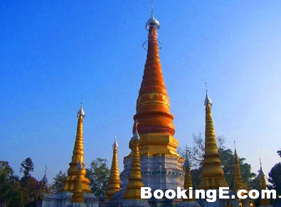 菩提寺位于云南省德宏傣族景颇族自治州州府芒市中心,是芒市地区现存较好的一座佛寺。粉墙绿瓦,层楼叠阁,斗拱飞檐,雕梁画栋,面对连绵伟岸的青山,背靠悠悠的芒市河,与风格独特的傣家竹楼、风光绮丽的亚热带景色相映成趣。