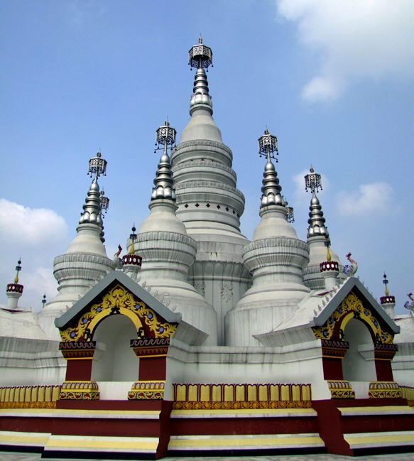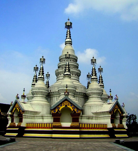 曼飞龙塔位于景洪市曼飞龙寨的后山上,建于傣历565年(1204年),属小乘佛教建筑。因其形似笋,俗称笋塔,又因其色白,称白塔。