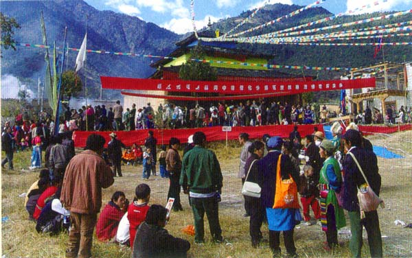 地区的喇嘛教是在清朝乾隆初年,由佐钦寺喇嘛杜建功传人。松娄喇嘛在贡山甲查姆桶地正式建寺,取名"飞来寺"。光绪年间,兰雀活格喇嘛由外地请来工匠,重新建寺。将原草房改为瓦房土木结构。于1783年建成了金碧辉煌的喇嘛寺。并改"寺"为"普化寺"。寺庙为三层楼房,雕梁画栋,内有泥塑佛像和彩色壁画。