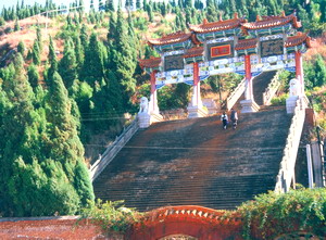海潮寺是昆明地区嵩明县三大寺之一,位于松柏苍翠的大鼎山北麓,龙王庙哑泉左右对峙,驿路畅行。有‘仙界’、‘诗窟’之美誉,名列嵩明八大寺。始建于明万历初年,山僧真发,建寺山隈。万历末至天启年间,楚僧澄明,架格海畔。历史上的嘉丽泽,湖水沦漪,潮音讯响,故名‘海潮’。崇祯初年,禅衲静修,建前后殿宇,左右廊庑。清康熙甲申年濒临坍塌,定空禅师重建。光绪初士民修葺。1997年兴建森林公园时重建海潮寺,为钢混结构访古建筑。”