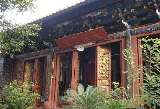 建水燃灯寺 位于建水城东门外燃灯寺街,是滇南著名的佛寺,创建于明嘉靖年间门 (1522一 1566年),为建水的佛教胜地之一。清咸丰六年(1856年)毁于战火,现存建筑为光绪四年(1878年)重建,为较典型的晚清风格。该寺坐北朝南,占地面积 1800多平方米,有前后两进院,布局庄重合理,小巧玲珑。现存中殿、后殿,两廊庑二十余间,中殿为天王殿,三开间,抬梁式屋架,单檐歇山顶,檐角飞展,造型别致典雅,屋面履以琉璃黄瓦,陶制仙人走兽装饰,并拼镶成金碧辉煌的菱型图案,为滇南佛寺中仅有。中殿内两翼底瓦层凸面,隔一黑瓦沟有四块有字白瓦相间,其上用行、草、隶、楷几种字体书写五言、七色古诗绝句,堪为独特。后殿亦三开间,面阔14米,进深10米,同样为抬梁式单檐歇山顶,建筑古朴。燃灯寺自1985年恢复佛事活动以来,香火日盛。
