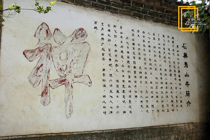 秀山脚下有一水塘,塘边建有“憩亭”,亭柱一副板联写到:“此处何妨小坐,大观还在后头。”道出了秀山寺的神秘。亭边有一石碑,刻“秀山”二字,为石屏名书家涂应恒于清乾隆八年(1743年)题。沿上山盘石小路而上,可谓曲径通幽,经古柏林,上青石台阶就到山门。山门上“秀山”二字飘逸潇洒,秀字象一个秀丽妩媚的姑娘在舞蹈,山字俨然就是一座挺拔俊俏的山峰。从古至今,凡是见过秀山二字的人,都对其书法艺术之高超赞不绝口。进山门,迎面就塑有弥勒佛像,所题对联非常有意思,上联是:“忠于国家,爱于人民,这等志士见神不拜又何妨;谋人财物,淫人妻女,那些恶徒纵来烧香也无益。”在大佛面前,是忠是奸、是正是邪,自有结果,劝导世人要有忠爱之心,不行奸恶之事。