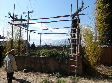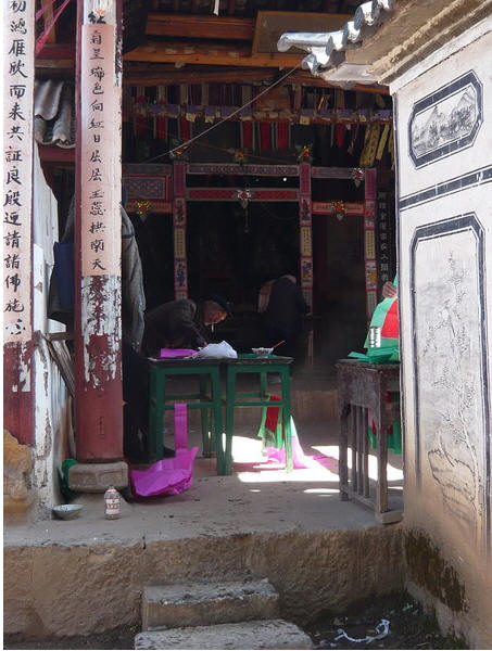 门外塑有二大金刚,威严堂正,左哼右哈,似乎惩前毖后。房数共计五台六院十八厢,皆龙凤楼,雕艺精巧,实为邀游胜地,文人多留笔写诗,如永胜县一位游者联题:“觉大功宏游览胜地,民安物阜舍利休z”。后在1943年兰坪县县长黄守义为巡视到此题诗“觉民庵上风景绕,水流阶前z作桥,古木青樟枫秀溜,四时佳景与人同。”类似诗作甚多,恨惜残蹋无遗。侍者:川西和尚,霜寒午夜,悟道修心,待漏三更参禅拜佛,那晨钟暮鼓,莺歌燕舞确是一番风味。