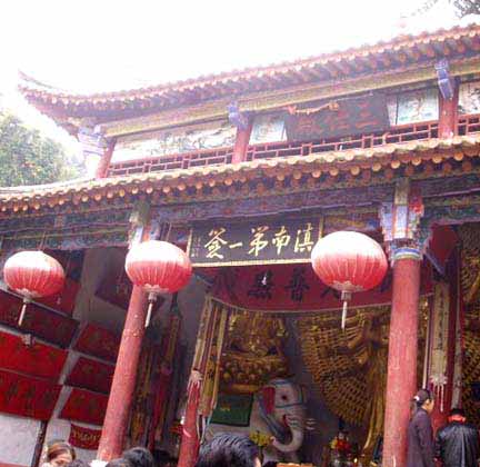 岩泉禅寺位于云南宜良城西一公里岩泉山,据说当年寺内高僧曾预言吴三桂与陈圆圆必有一个出家,后来吴三桂有感于预言的准确性,专门题了一块匾:滇南第一签。寺内人文景点丰富,游人众多.