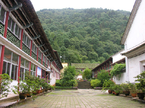 云南昆明西山大雄宝殿之后,有近年重建之藏经楼,楼侧有祖堂、经堂、静室、方丈室、云房、僧厨等,楼左大理石屏之上,刻有林则徐为华亭寺方丈岩栖诗集所题七绝四首,对诗僧推崇备至,其一日:“半偈修持静掩关,六时钟磬彩云间。个中悟彻诗三味,砚洗平泉绮语删。”