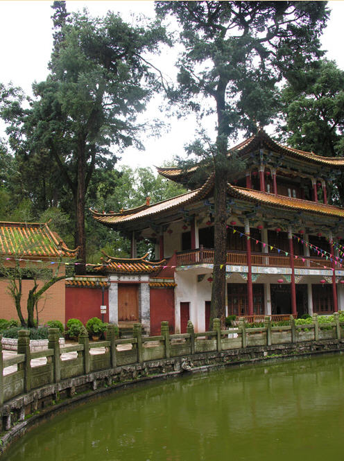 200多年后,元元事占七年(1320),云南昆明筇竹寺雄辨法师之高徒玄峰禅师(又名元峰、铁峰)驻锡华亭山,结茅传经,得高氏后人之助,于至治三年(1323)募化建大光明殿,供奉毗卢佛像和圆觉十二大士,“故以‘圆觉’题其名”。玄峰苦心经营十余年,圆觉寺规模扩大,“其方丈、浴塘、香庖、仓廪、园匦、磬函,靡不完备;彩饰丹垩,栏循台榭,薨垣墉,悉皆缜密”。玄峰又亲至江南迎来<大藏经>,立宝音殿藏之,圆觉寺顿成昆明一大丛林(元·述律杰<启建华亭山大圆觉禅寺碑文>),时人刘有年<游华亭寺>诗日:“六时静听莲花漏,万里新翻贝叶经,见道异僧曾说法,至今白石点头听。”元代佛教盛行,可见一斑。