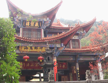 云南昆明西山华亭寺,华亭寺位于云南昆明西山华亭山腹,为西山风景区中心之地,距高蛲约2.5公里,可沿柏油公路步行而至,亦可从山下苏家村沿石阶拾级而上,“松杉蔽天光,一径入森爽”,“摄衣逾崇冈,林峦信藤杖”(清·许浞<华亭寺>),乐趣自在。云南昆明西山华亭寺背倚危峰,前临滇海,左傍太华,右接碧蛲,琉璃殿阁,金碧辉煌,布局谨严,规模宏伟,修竹拥翠,茂林蔽日,为昆明佛教名刹。
