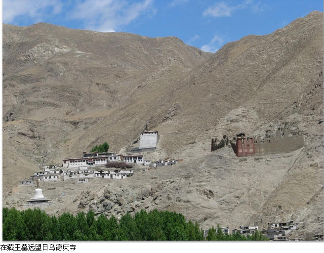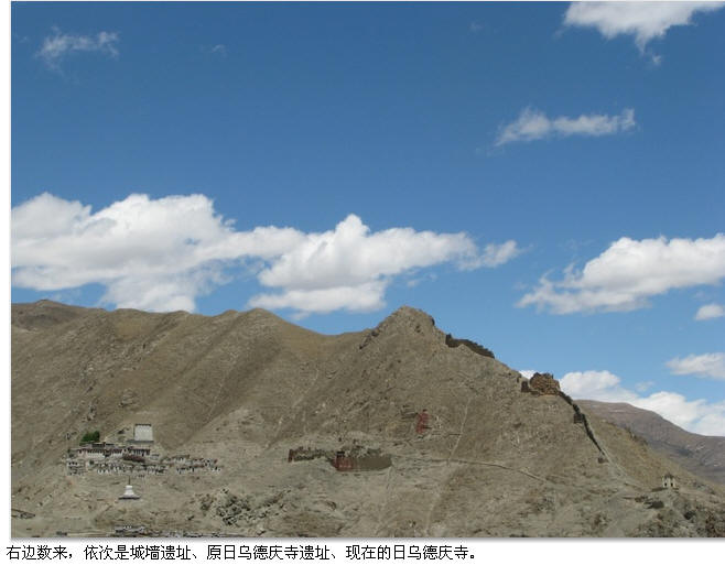 五世达赖出生在琼结,由格鲁派高僧洛珠白桑在朗波齐山上创建的日乌德庆寺,就成了五世达赖的本寺。朗波齐在藏语中是"大象"的意思,日乌德庆寺被称为"建于大象脖颈上的寺庙"。五世达赖驻锡日乌德庆寺时,专门写了几句诗,赞颂该寺: