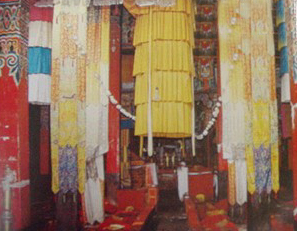 另 外,在加嘉岗下的克贡村,还保留一座灵塔殿。灵塔建在殿堂中心,毁於1959年。据了解,灵塔内藏有:舍利子,一尊金制佛像,铃铛一个,金刚杵一个。佛塔 内有泥制佛像,塔为土砖木结构。灵塔殿的壁书现保存无量寿佛、释迦牟尼佛、度母、护法神、狮面人身像、四大天王等。绘书特为先描黑线条,然后涂料,未有上 光漆。壁书单纯而素朴,这些壁书已有数百年的历史。