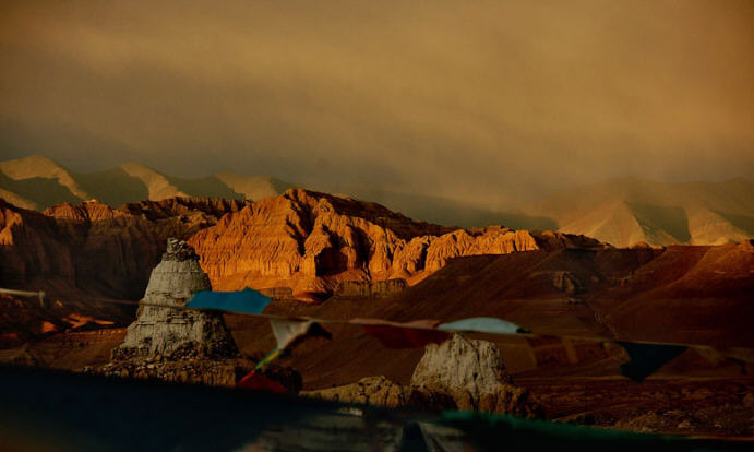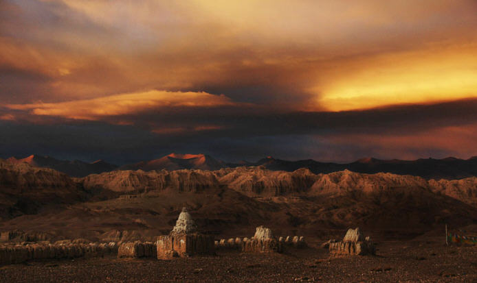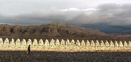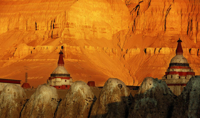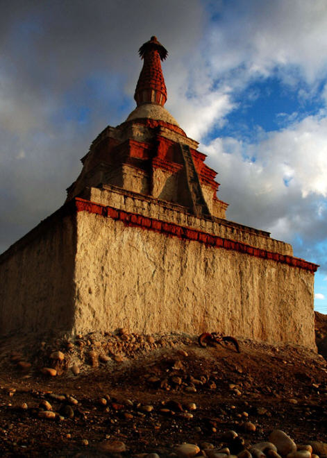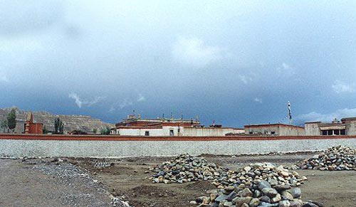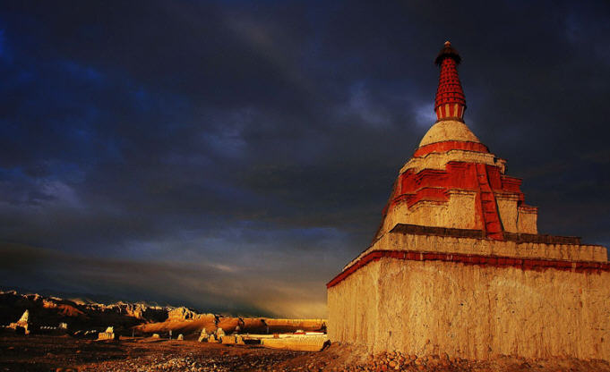 托林寺紧挨象泉河畔,总面积东西长,南北窄,分殿堂、僧侣、僧居、塔林三个部分,呈条形布置。