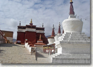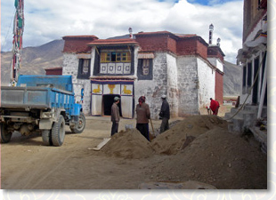 规模不大的噶泽寺位于墨竹工卡县附近,座落在祈楚河谷东岸的陡坡上。