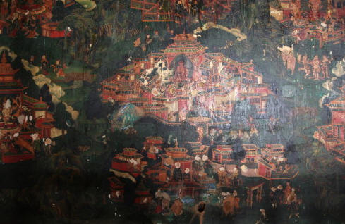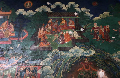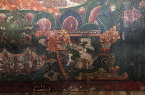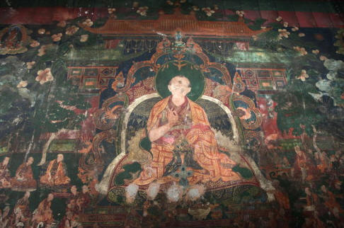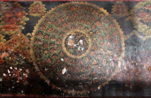 现只有主殿保存较好,部分佛塔得到修葺,周围配殿、佛塔等只是依稀可辨。幸好主殿下层保存了一幅桑耶寺全景图的壁画,把过去的规模布局展示出来。