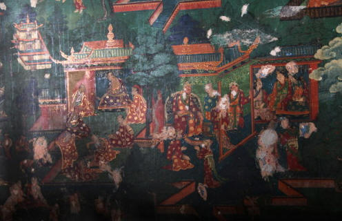 吐蕃王朝(西藏)赤德祖赞赞普于公元755年逝世后,赤松德赞继位。因其年幼,便由老臣玛尚仲巴结掌握全部大权。玛尚仲巴结信奉苯教,极力反对佛教,便 借口过去几代藏王的短寿,和国家的兵连祸结,将这些事情都归罪于佛法。又编造许多谎言,诬蔑释迦佛像为引祸根源,把像埋在地下,后又移到芒域。改大昭寺为 屠场,拆毁墀得祖敦所建的喀扎寺和真桑寺。下令禁佛,驱逐佛教徒,杀害信佛大臣。