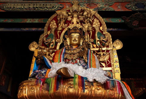 此后,赤松德赞派人复去迎请寂护大师,莲花生大师和寂护大师均被迎请到今桑耶地方,由莲花生大师择地,修“讫地仪轨法”而作殊胜加持;寂护大师为主而设计;赤松德赞主持奠基及修建。三尊协力将佛法在雪域发扬光大,这就是后业藏史所称“师君三尊”之典故。