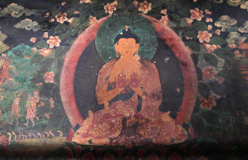 此后,赤松德赞派遣巴·赛囊和桑希等三十人去内地向唐肃宗皇帝求取佛经返藏,又派人去乌仗那邀请莲 花生大师。后莲花生大师,和来迎请他的人约在芒域相会。莲花生大师在来吐蕃的路上,用密咒法之威力将吐蕃的十二坚牢母(地神)等慑伏,使其不再作恶,皈依 佛教,并立誓为护法。若非莲华生大士的慈悲威德,调伏天魔外道诸障,并将印度显密佛法弘传西藏,而作殊胜加持,改变了当时的吐蕃环境,把西藏转变成佛教国 家,成为佛教圣地,就没有以后的藏传佛教发展,所以说:「密法恩源莲华生」。