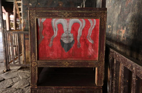 桑耶寺古钟。这口古老的铜钟是桑耶寺保存下来的珍贵文物,它铸造于公元8世纪后半叶的建寺初期,由汉僧在西藏监造,是当地铸造的第一口铜钟。