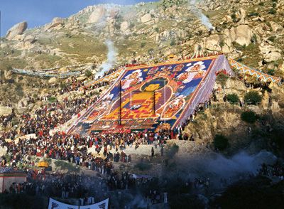 哲蚌寺,在拉萨市区境内,位于市驻地以西约10公里的根培乌孜山南坡的山坳里。“哲蚌”,意为“米堆”、“积米”,全称“吉祥米聚十方尊胜洲”,旧译“别蚌寺”、“面赉绷”等。占地面积约25万平方米。与甘丹寺、色拉寺合称“拉萨三大寺”。
