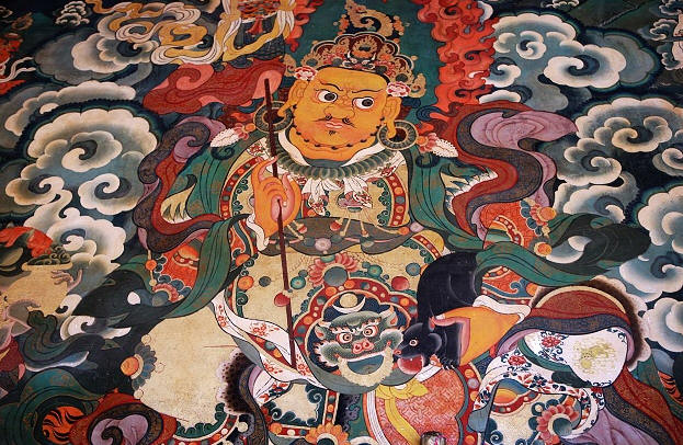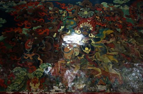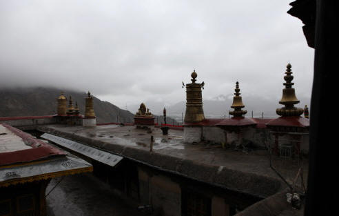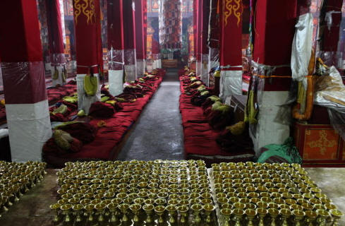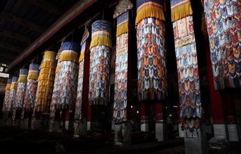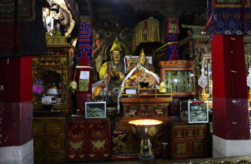 大殿二楼只有一个“甘珠尔拉康”,余为库房。拉康内所藏《甘珠尔》经典很多,原有3部珍贵藏本:一部为明朝后期云南土司木增所送的理想版《大藏 经》;另一部为清康熙时木刻经文;不有一部是1675年(清康熙四年)第巴·洛桑土都为达赖嘛祝寿而用金汁抄录的全部《甘珠尔》经文。