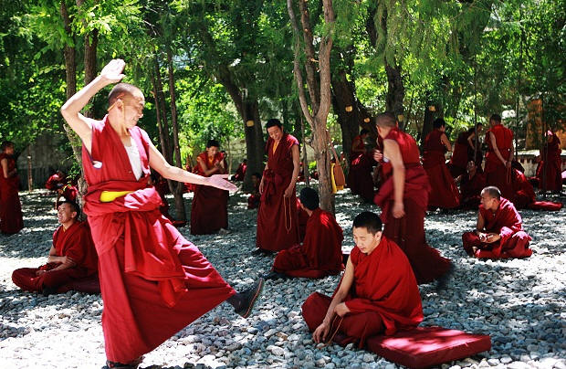 四大扎仓:扎仓既是格鲁派寺庙的学经单位,也是措钦以下的一级管理机构,亦称“经学院”。哲蚌寺建成之初,原分为多门院、明惠州、广乐院、闻思 州、夏郭院、调伏州和密咒院7个扎仓。由绛青曲结的七大弟子各主持一个扎仓的喇嘛学经。后合并为现存的罗赛林、古玛、德阳和阿巴4大扎仓。其中前三个为显 宗扎仓,后一个为密宗扎仓。