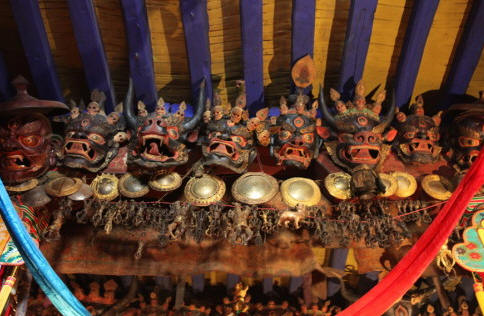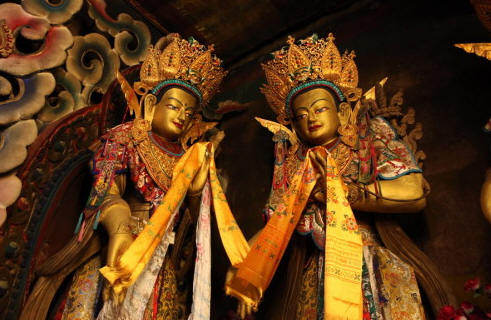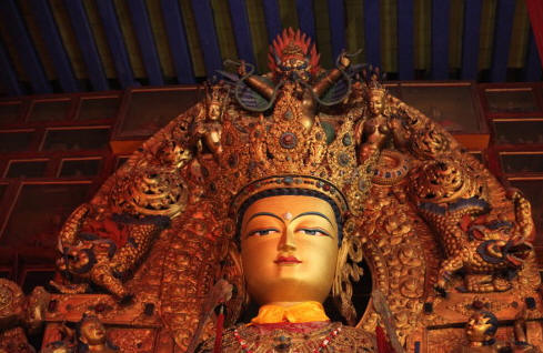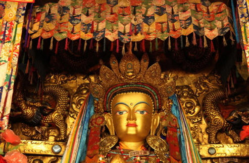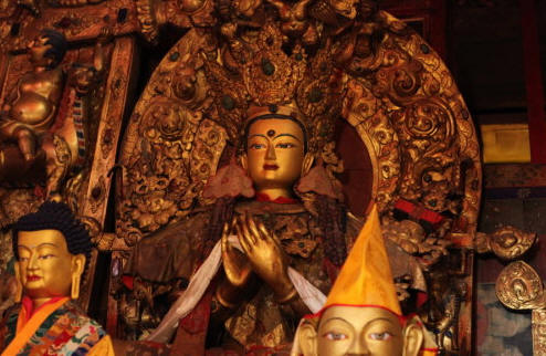 色拉寺内藏有极为丰富珍贵的文物,其中有不少属于国家级重 要文物,其中有不少属于国家级重要文物,主要包括各种胎质的佛像、唐卡、壁画、佛经、法器和供器。措钦大殿内观音殿中供奉的金汁书写的《甘珠尔》和《丹珠 尔》大藏经、文殊殿中供奉的1413年北京版《甘珠尔》大藏经、罗汉殿中供奉的永乐皇帝赐予的十八罗汉檀香木像、吉扎仓内供奉的“大明宣德五年内加金银 造”铜钹和现藏于西藏自治区文物管理委员会中的大慈法王释迦也失真容缂丝唐卡等都是寺藏文物中的精品。其中永乐皇帝赐予释迦也失、1410年用朱砂刊印的 108函北京版藏文《甘珠尔》(现有105函)最为珍贵,它不仅制作精美,而且是第一部用雕版印刷术印制的藏文大藏经,对研究我国版本学和印刷史都具有重 要的价值。