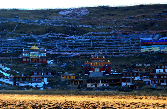 佐钦寺坐落于西藏东部,横断山脉美丽的昌都地区地区江达县生达乡境内。是圣观音菩萨之化土,上怖畏金刚化身红牛降 伏蛇魔之圣地。寺院于公元1230年由高僧嘛尼仁青的高徒迦卢巴-旦曲丹增仁波切创建(西藏地方面临归附蒙古汗国时期)。该寺院原名生达佐钦大圆满吉祥禅 院,持续兴盛近470年。曾进行多次修复,具足显密甚深广大传承,戒律严明,如理闻思修,成为康藏宁玛派别解脱戒与菩萨戒的授戒中心;是五明与大圆满的修 证中心。在公元1265年八思巴从蒙古汗国回来后,在此地寺院的基础上又修建了几座经堂等。公元1698年,邬坚桑丹仁波切奉上师阿旺洛桑嘉措生前的谐旨 与毗卢遮那佛口谕,在怖畏金刚降魔地隆嘎山修建寺院:包括大殿一座、禅院三座、经院一座、汉藏学者经典著作库一座、上师殿一座、僧舍。塑造本尊、菩萨、上 师像以及镏金彩绘六大密部所属坛城之寂怒本尊、空护法像极为庄严。在开光大典迎请诸佛圣众法会时,诸佛圣众像朗朗日轮降临融会到寺院,给寺院巨大的加持。 当地的藏族信众看见红光普照,空中朵朵鲜花飘落,听闻侥钹之清脆妙音等等殊胜奇景,壮观美丽。寺院落成开光后,老寺院迁入新址。当时四众弟子遍布康藏,前 来常住的僧人近450人。由于僧众不断增加,于公元1792年在隆嘎山下生达地方,由晋美腾秋旦巴朗杰仁波切建成了八十八根长拄组成的大殿,与前期寺院连 成一体。于1985年又修建了五明佛学院一座,闭关院两座,从初始创建之今,生达佐钦寺已走过770年的光辉历程。众多大成就者都曾亲临本寺开光加持。如 八思巴尊者维修过本寺院并开光;宗喀巴大师前藏时,路过本寺,在石岩上以神通用指写下六字真言及留下足印,宗喀巴大师赞叹本尊怖畏金刚地,长出柏松,之今 还在。还有菖才旺王、萨迦法王、嘎玛巴、历代司徒活佛皆亲临本寺开光加持。全知麦彭仁波切到达本寺时,曾亲见七佛尊容。智者嘎玛差美给神山进行开光,并对 转此山的善因进行了释义。