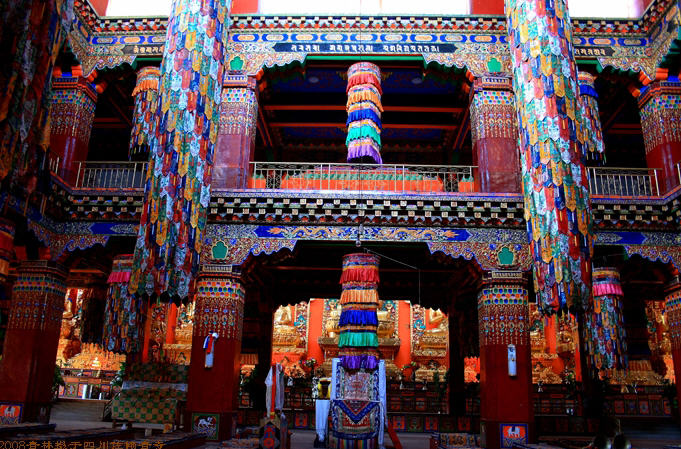四、寺院的历史文物主要文物有大班智达阿旺洛桑嘉措赐邬坚桑丹的赤金开口毗卢遮那佛贡日曲旺修的 伏藏品,本尊莲师避灾佛,仁真亚美林巴取藏品宝匣,本尊怖畏金刚化身红牛降魔时留下的手足印遗址,金铜铸造两层楼高的释尊佛像以及千手千眼观音、二十一度 母,莲花生八像,由金铜药泥塑造的上师、护法本尊等千余尊,另有金粉写成的甘珠尔与丹珠尔等众多佛学经典与学者著作三万二千余卷,还有金铜所铸之灵塔。本 寺被国家列为重点文物保护寺院。是昌都地区六大寺院之一。