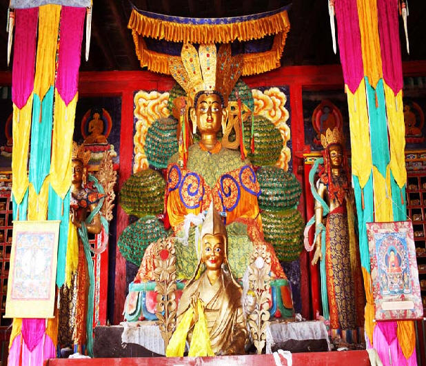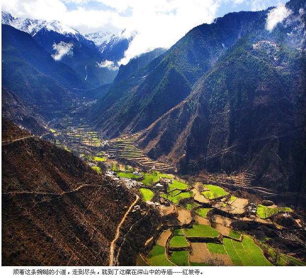噶丹羊八景林寺,又名红坡寺,位于德钦云岭乡红坡村, 始建于公元1514年, 属格鲁派黄教,有清咸丰皇帝赐匾”化行南帮”一块,目前有活佛一人,僧人80人。