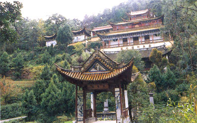坞内主建筑慈云阁层楼高耸,飞檐翼然,古朴庄严,为大慈大悲观世音菩萨安享人间香火之所;附属建筑藏经楼、读画楼、醉月楼、菩提楼、养云池、雨花亭、瑞雪岭等亭台楼阁皆依山构筑,错落有致。每逢春风生暖的时节,满坞梨花盛开,如棉似雪;株株垂柳拂堤,风缓枝柔,景色十分明丽,故有联曰:“一树梨花千点雪;两堤杨柳万窝丝。”如今,联中景致因树枯时迁而不复存在,但这联语及联语描绘的瑰丽迷人的古坞情采,依然给人以无穷的遐想。