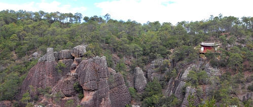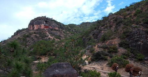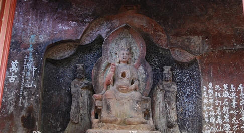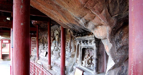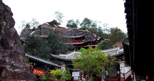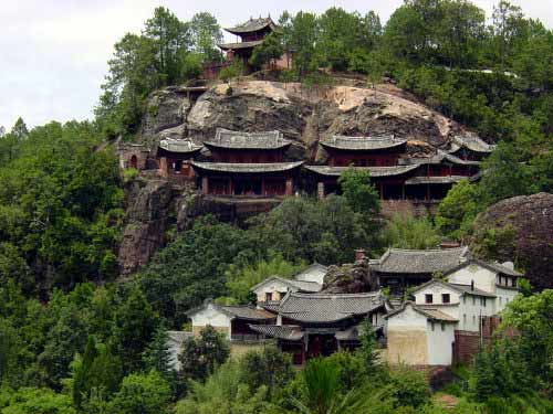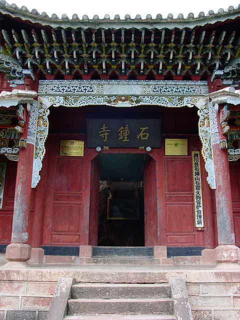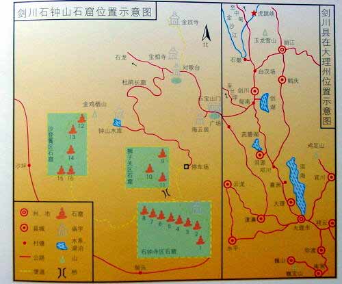 石钟山石窟又称剑川石窟,位于剑川县城西南25公里石宝山南部文峰,因有一紫红丹岩(丹霞地貌)形状如倒扣石钟而得名。石窟群依山开凿,宏伟壮观,共有石钟寺区、狮子关区和沙登箐区,计17窟,造像139躯,是南诏、大理国时期的艺术瑰宝。