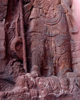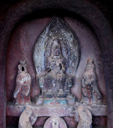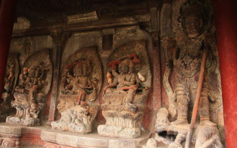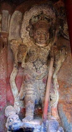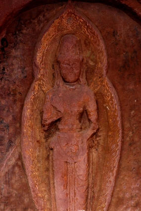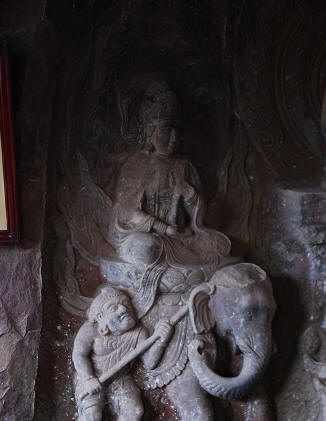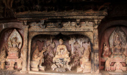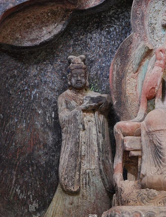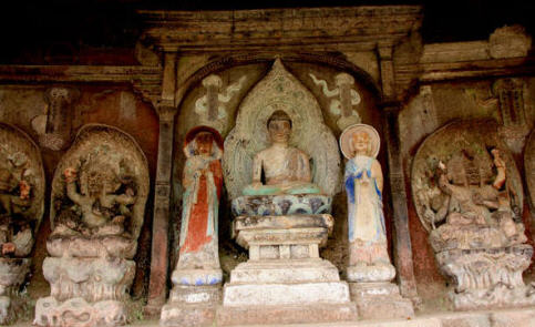 在石窟中雕像最多的是宗教人物。如观音、阿难、迦叶、文殊、普贤、八大名王、多闻天王、增长天王等等。这些形象大都雕刻精细,形象生动,各有个性。同是观音,在雕刻家的手下形象各不相同,有愁面观看、甘露观音、细腰观音等等。