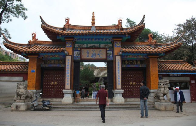 昙华寺,又名昙华庵,坐落在昆明城东金马山西麓,寺院坐东向西,前临金汁河,后枕瑞应峰。《昆明市志》记载:昙华寺“背依金马,崇岗千仞,面瞰春城,烟火万家,碧鸡、玉案诸峰环拱,金汁河水蜿蜒从寺门流过。”