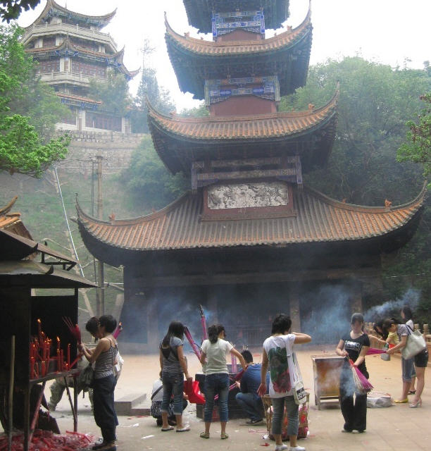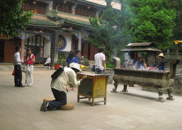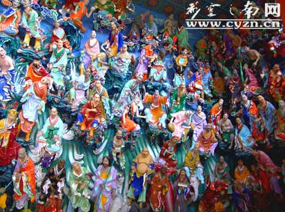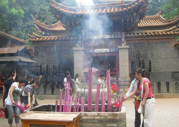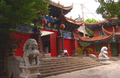 云南昆明盘龙山现存20多院宗教建筑,或殿宇辉煌,或仅留遗址,皆依山而筑,随势而建,四面散置,参差互见,或称“寺”,或称“观”,或称“庵”,或称“庙”,佛、道皆称,不拘一格。寺、观、庙、庵之中,所奉神像,或为佛祖,或为天神,或为儒圣,均在佛、道、儒之间,佛道同参,而兼奉儒圣。
