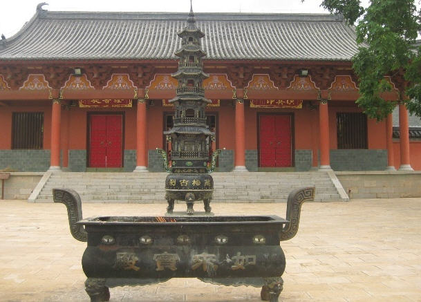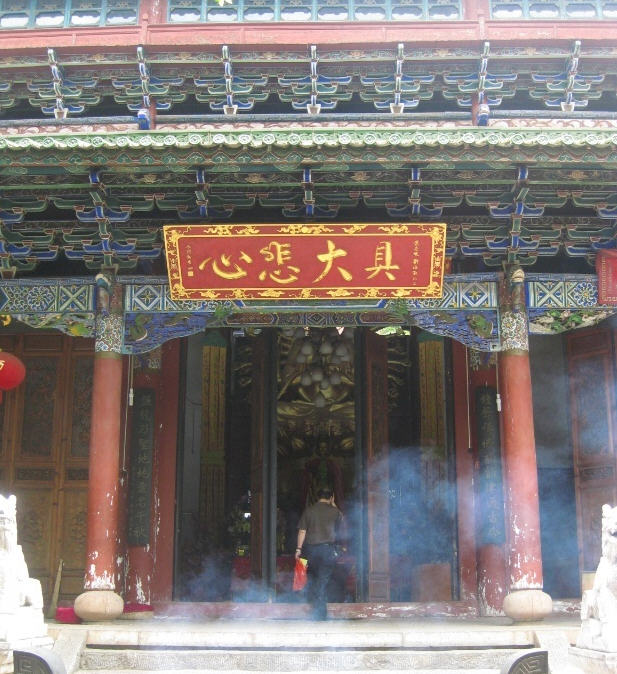 寺门台廓侧柱之上,挂一古联,极言盘龙寺宗教地位之高,其日: