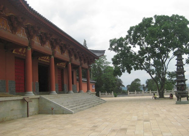 云南昆明盘龙山寺之盛,还在明代。今盘龙山上,明代所立寺庙。尚存三座。一为祖师殿西南之接引殿,供奉西方接引三佛,原建于寺门以东,后毁于地震,道光年间重建,再毁于浩劫,1992年移地现址再建。大殿以西侧后,有明代所立之伽蓝殿,今亦修复,供奉伽蓝祖师。此殿虽然僻小,但民间传说伽蓝主司人间六畜,远近农民多至此祈求家畜兴旺,香火历来旺盛。祖师殿东北,则有紫金台,供奉观音,亦建于明代,后毁,1990年重建,初名紫金殿,又改大悲殿。