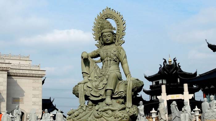泗州大圣德行超卓,生前被尊为″观音菩萨″化身,自后一段时日,凡观音佛像均以其形像为模本。据传说,那时的观音一直系″男相″,唐代以后才阴差阳错变为″女相″。泗州塔及城于清康熙十九年(公元1680年)为洪泽湖水所掩没,大圣真身则永沉湖底,故无锡市江阴出土的舍利实为大圣存世的唯一法身。