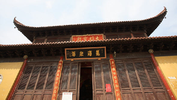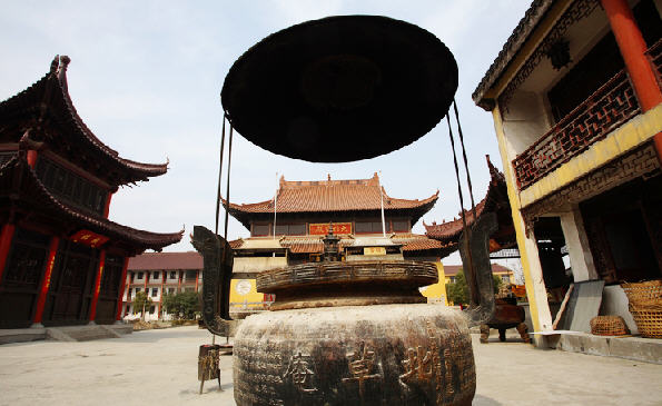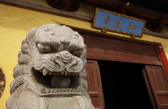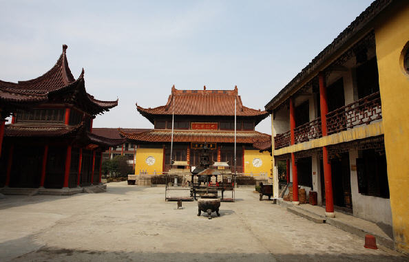 伽蓝寺与扬名大桥位于太湖镇。伽蓝寺原为关帝庙,扬名大桥原是一座木桥,毁于太平天国。清朝末期在庙西南面重建了扬名大桥,即现在的三环洞金山石质大桥,七十二石级拾级而上,古朴而典雅。关帝庙佛像毁于文革,殿舍改为工厂。直到二十世纪九十年代,重建新庙,因关云长"放下屠刀,立地成佛"得成正果后追封为十八伽蓝护法神之一,故取名为伽蓝寺。寺内新建大雄宝殿,二重檐、飞檐翘角,颇为高大宏伟;观音殿、地藏殿、伽蓝殿、三圣殿、钟鼓楼、居士楼等也已完善,寺庙已初具规模。除周边地区外,无锡、上海等地香客也经常来寺,并有台湾同胞、美籍华人也来寺烧香还愿。