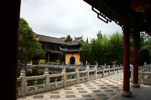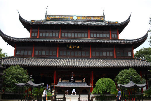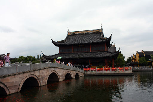 宋元佑元年(1086年),里人周迪功郎,舍宅为寺,位于白蚬湖畔。后经历代扩建,梵宫重叠,香火旺盛,成为远近闻名的寺院。到了本世纪五十年代,殿宇改作粮库,随着周庄镇旅游业的发展,全福讲寺于1995年重建。历时不到一年,一座以水借景的寺庙园林建成了。全福讲寺处于全园中轴线,主要建筑有:山门、指归阁、大雄宝殿、藏经楼等。整座寺庙结构严整,殿宇轩昂,黄墙露瓦,雕梁画栋,蔚为大观。借水布景,巧夺天工,楼阁殿宇,鳞次栉比。既有佛教文化的博大精深,又有建筑艺术的美轮美奂,园林景色,如诗如画,令游人流连忘返。