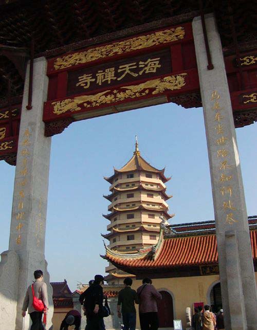 海天禅寺,是在我国改革开放新机遇中应运而生的大型佛教寺院。其位于江苏省太仓市经济开发区中心。占地百余亩,地理优越。它紧靠沿江高速公路,东枕长江;西接班204国道、昆山、苏州;南倚名都上海;北望无锡。可谓是交通便捷,物阜民丰,万商云集。人文荟萃。